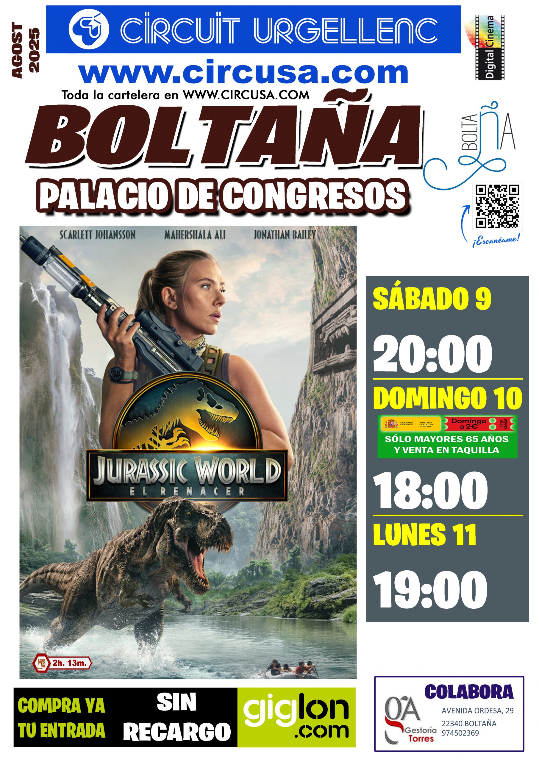 Una nueva película llega este fin de semana «Jurassic world» al Palacio de Congresos de Boltaña con tres pases del sábado 9 al domingo 11 de agosto de 2.025.