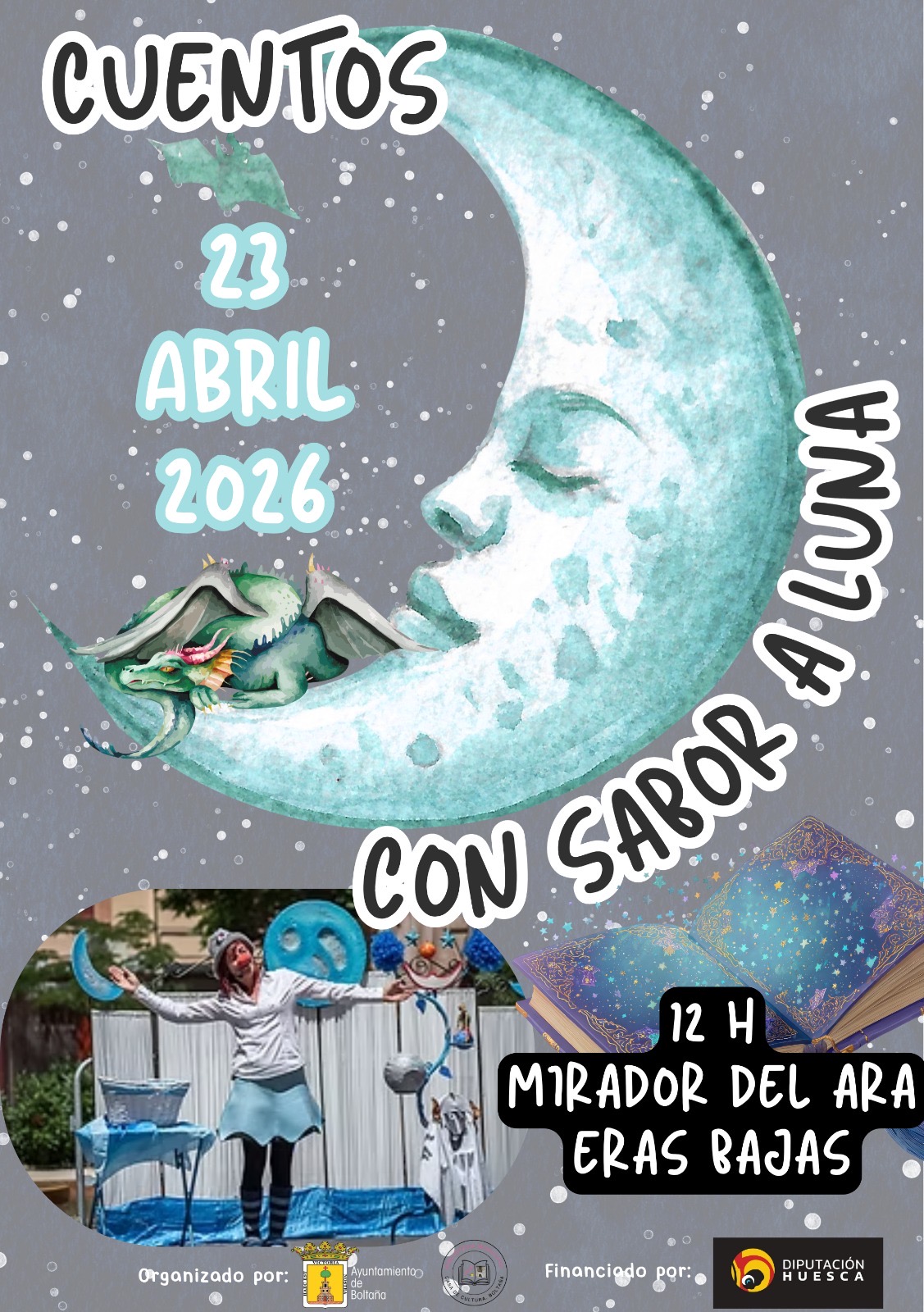 Cuenta Cuentos en las Eras Bajas el Mirador del Ara , a las 12:00horas . «Cuentos con Sabor a Luna».