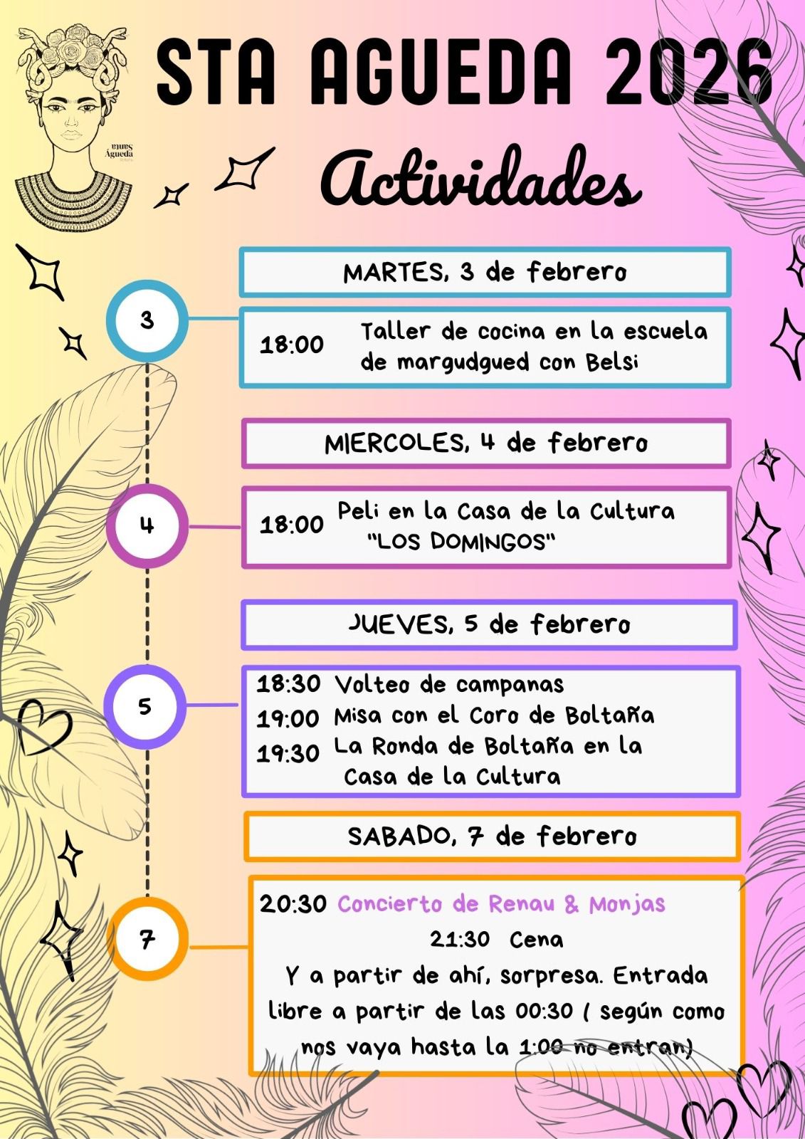 Programa de actividades de la Asociación de Santa Águeda de Boltaña . Para la próxima semana de martes 3 al sábado 7 de febrero del 2.026 en Boltaña.